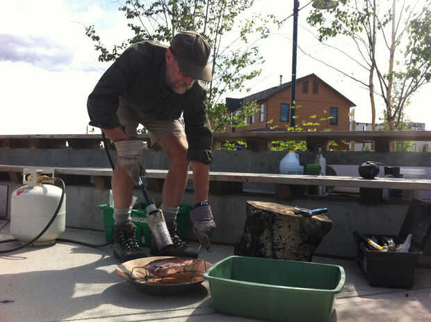 Tener un lugar donde puede calentar el recipiente de cobre con la antorcha de propano sin dañar el piso, o cualquier cosa a partir del fuego.
