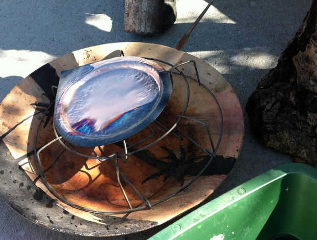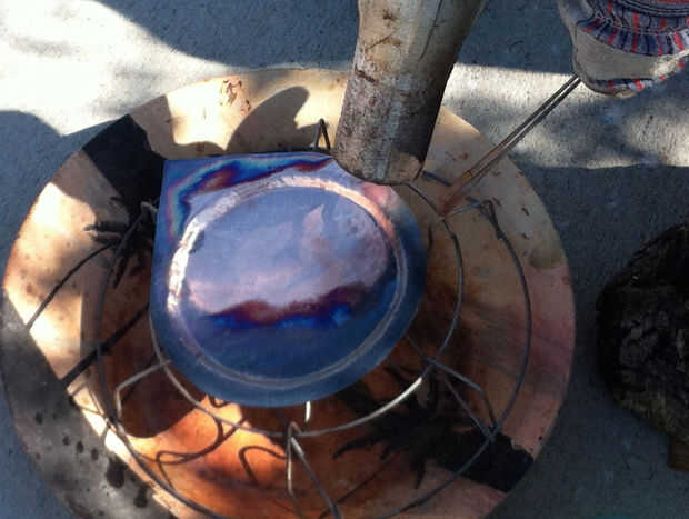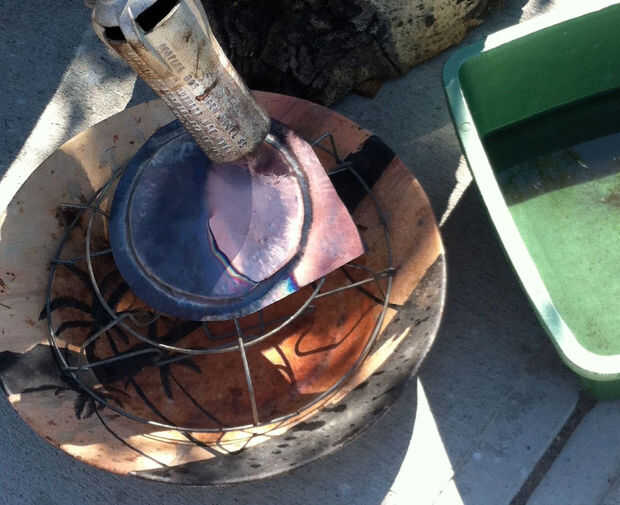 Para templar adecuadamente, las necesidades de cobre para llegar a la etapa final de azul-gris - ¡ cuidado ahora es muy caliente!