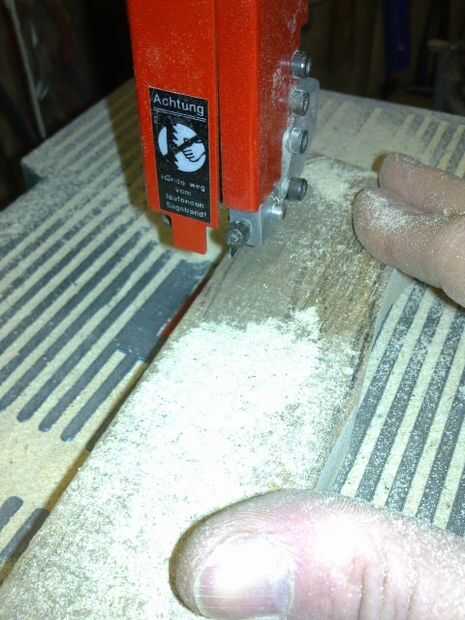 Con la sierra adecuada, corte la forma básica.  Aquí estoy usando una sierra de banda, pero una sierra de traste o afrontamiento haría también.