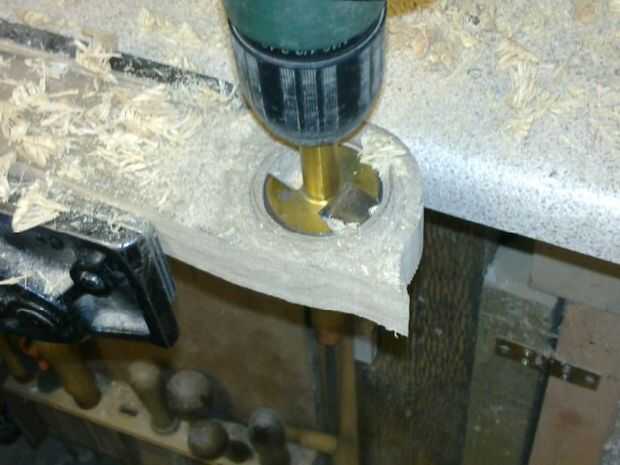 Taladrar un agujero de 40mm para tomar una vela de la t-luz, asegúrese de que haya suficiente espacio alrededor del agujero, si se utiliza material más delgado entonces