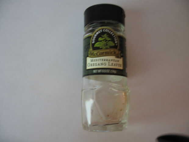 • Un contenedor de especias vacío, pequeño. La tapa debe tener una tapa superior y los agujeros, pero la parte superior abatible puede ser interrumpida.
