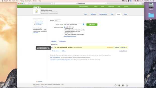 Ahora que hemos terminado de configurar es tiempo para construir nuestro sistema operativo. Seleccione la pestaña "Construir". Se establece el formato predeterminado en: "USB Stick / disco duro imagen" y debajo de eso seleccionar "Live CD / DVD (.iso)" para que pueda descargar y ejecutar el sistema operativo dentro de una máquina virtual. Por último Presione el botón generar para que puedan comenzar el proceso de construcción. Advierto que esto puede tomar un tiempo y depende del tamaño total de los paquetes que desea instalar. Una vez ha terminado edificio testdrive click para probarlo en línea.