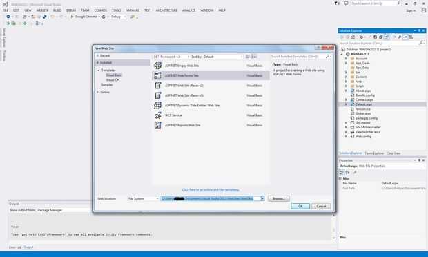 Haga clic en sitio web nuevo, archivo. Luego seleccione "Sitio de formularios Web de ASP.NET"