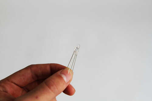 La imagen de abajo muestra un LED RGB cátodo común. Esto simplemente significa que los 3 LEDs internos comparten un conductor común y este cable debe conectarse a tierra. Tierra es un nombre electrónicamente con vocación de uso popular como el punto de referencia que los voltajes se miden desde un camino común de retorno para la corriente eléctrica. En nuestro circuito de tierra significa simplemente el terminal negativo de la batería de 9V.