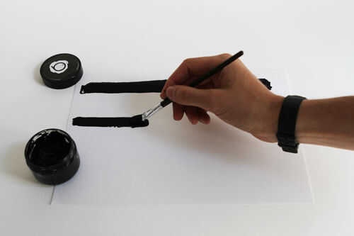 Tomar el bote de pintura desnuda, pintura profusamente tres líneas a través de un pedazo de papel u otra superficie no conductora. No se olvide de traer las líneas cerca del borde como se necesita para conectarse a la pintura usando clips y cables eléctricos. Una vez que han pintado sus líneas, dejar que se sequen durante varios minutos. Puede dejar la pintura debajo de una luz caliente para acelerar el proceso de secado.