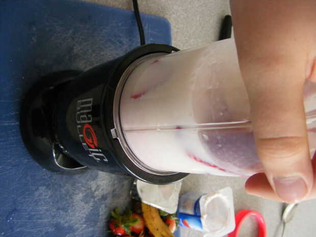 Cuando haya terminado, debe tener una textura suave a lo largo (de ahí el nombre, batido). Si te gusta en trozos, dejar las fresas enteras o no mezclar demasiado.