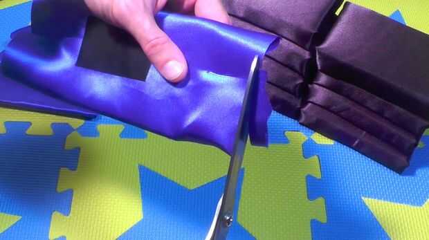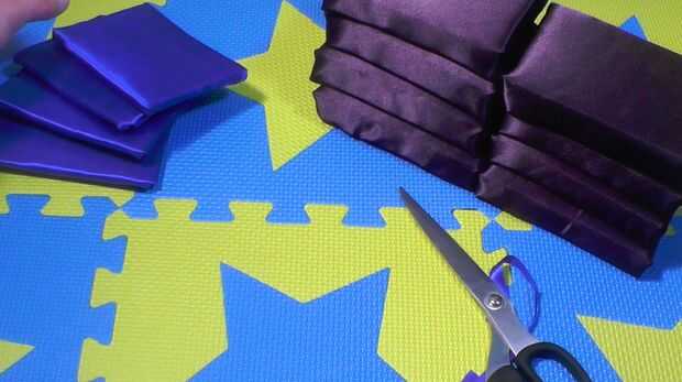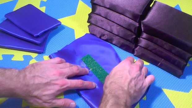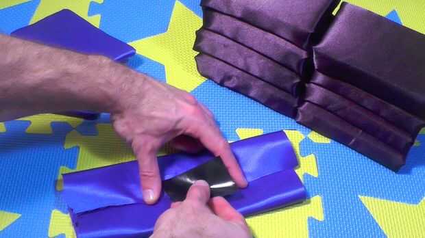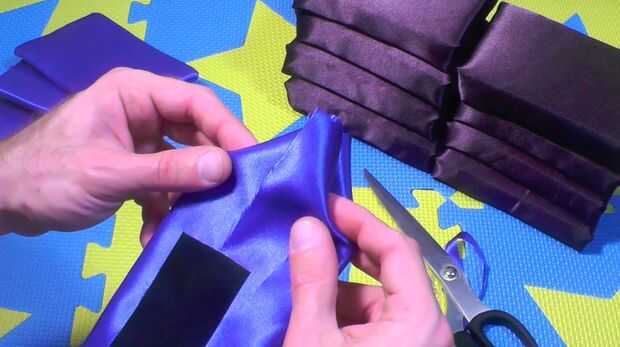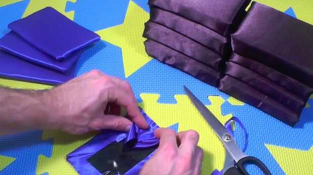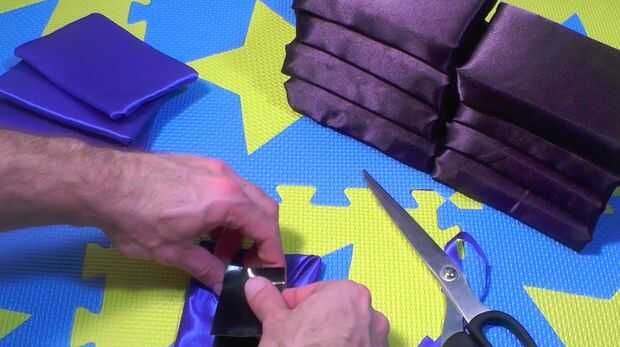 Atentamente y cuidadosamente Envuelva las 4 partes de matorrales ásperas de la tela de esponjas en el azul (o el acento de color de su elección) con la cinta americana. Asegúrese de que tuck en los bordes que limpia las esquinas agudas.