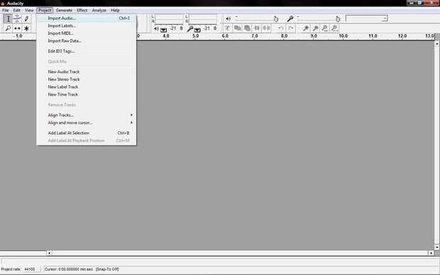 Ahora necesita importar tu música. Para hacer esto, necesita ir a la barra de herramientas de audacity y haga clic en el cuadro de "proyecto". Aparecerá una lista, haga clic en importar audio y Localice y seleccione el archivo de audio que gustaría hacer una "voz suave" instrumental de.