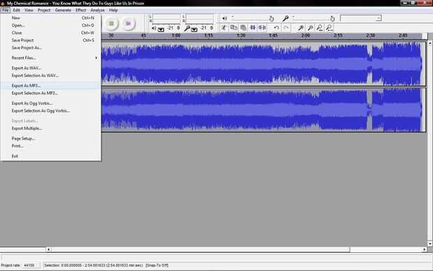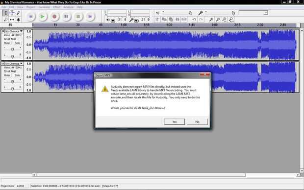 Ahora para hacerlo en una sola pista. Para ello, necesitará descargar el archivo lame_enc.dll . Una vez descargado, vaya a la barra de herramientas y seleccione "archivo". Aparecerá la lista desplegable, seleccione "Exportar como MP3..." Se le pedirá con un pop-up diciendo que usted necesita para seleccionar el archivo "lame_enc.dll". Seleccione el archivo "lame_enc.dll" en donde lo guardó. Y después de exportar a donde seleccionaste, vas a tener un instrumental "suave voz" de audio que utiliza!
