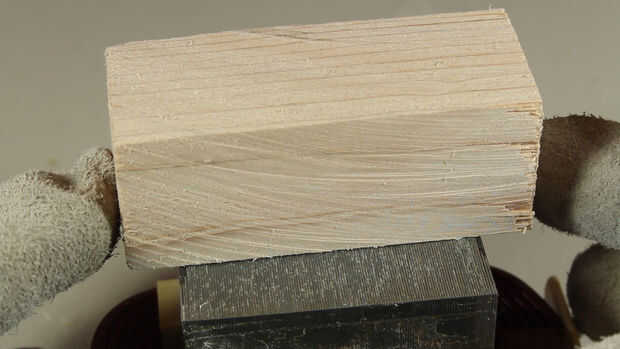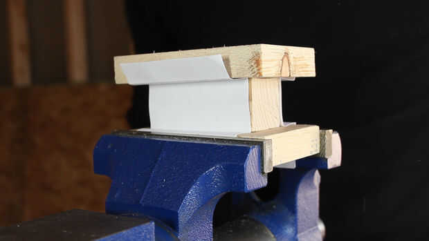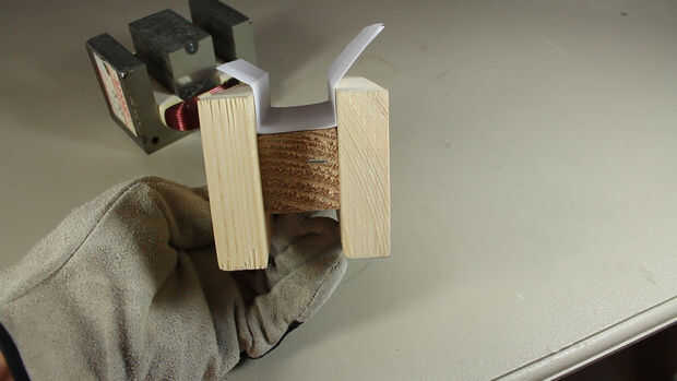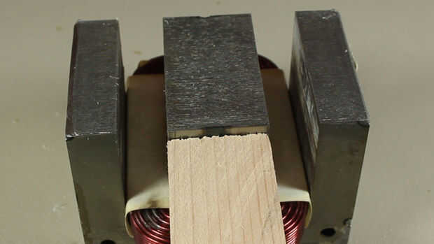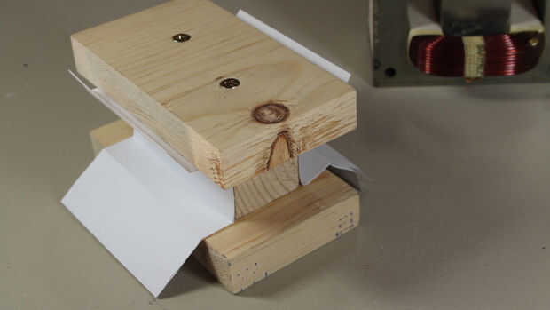 Para hacer esta plantilla, utilicé un trozo de madera sobrante y cortarlo para que era tan amplia como el centro del transformador y un poco más corto que la parte superior. La longitud se cortó para que radiales de 1/2" de los extremos.