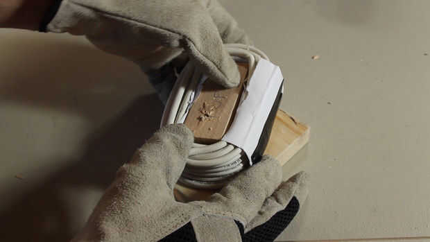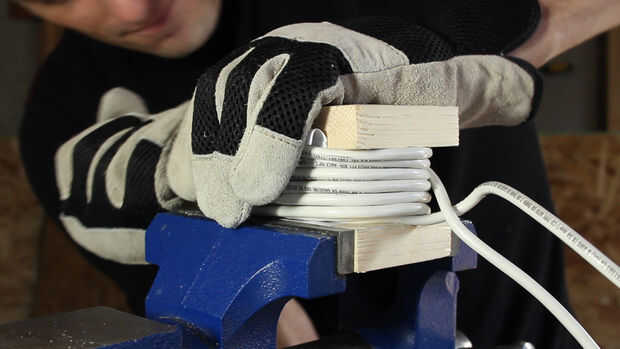 Una vez montado en una prensa de banco para aprovechar, el cable puede herido en.