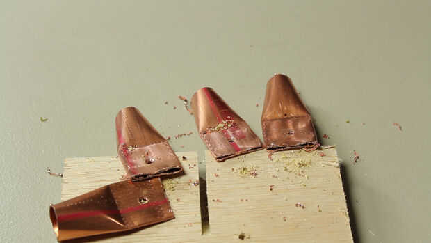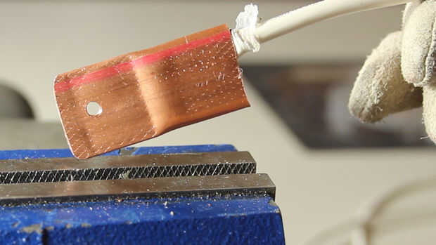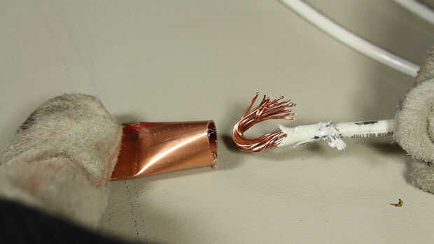 A continuación, había expuesto el cobre en el extremo del cable y había doblada sobre, por lo que encajaría dentro de la parte inferior de la zapata.