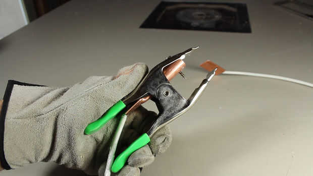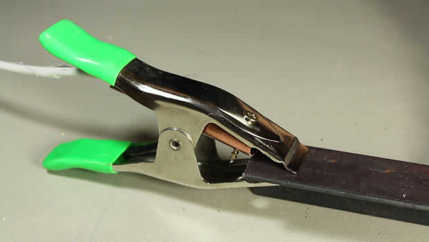 Para la pinza, he encontrado este metal en la ferretería por sólo $0.99. Cuando se quitaron las puntas de goma, puede conducir la electricidad.