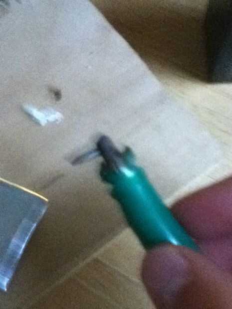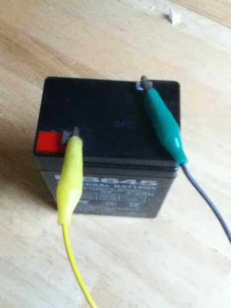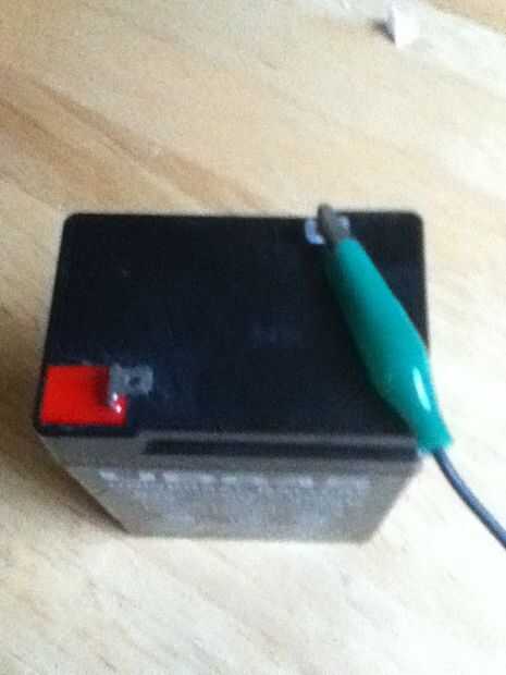 Coloque el grafito (tomado de grafito de un lápiz afilado, roto) en la pinza en el cable verde.