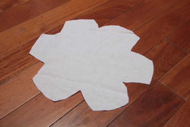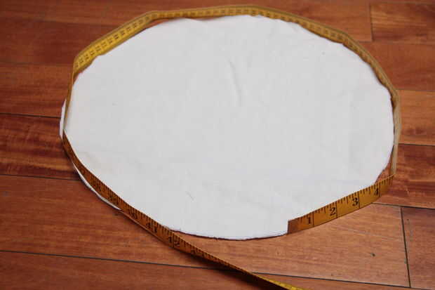Haz un círculo más pequeño (aún más grande que la cabeza) y del rastro en el centro del punto de tela. Dibujar triángulos que ocupan las bases x'd y tienen puntos en el círculo interior.