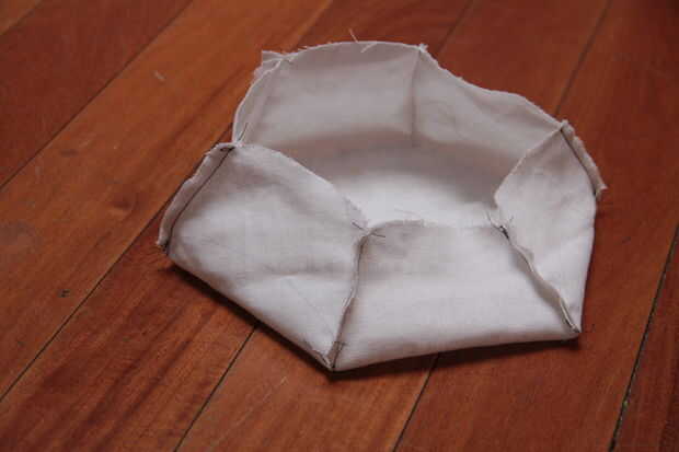 Coser los bordes del triángulo. Este forma de su sombrero.