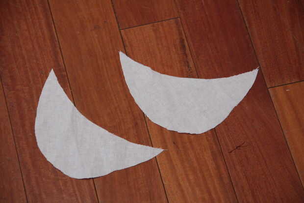 Corte dos medias lunas de tela. ¡ Pero espere! Si desea bordarles, hacerlo primero. Lo hice, y estas medias lunas no son las que usé. Pero demasiado.