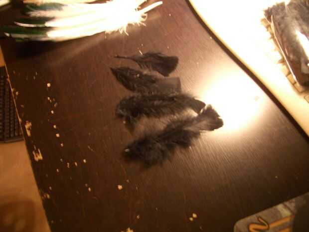 Ahora toma tu águila plumas y dividirlos en dos grupos iguales de plumas de izquierda y derecha. La forma que se puede saber es sólo recogerlos y ver manera de bruja señalan. A continuación tomar el águila plumas y su secador de pelo y alisar las plumas por calentar la pluma y aplastamiento entre dos libros (este paso es totalmente opcional, no hice este paso y mina resultó bellas, hace el tocado mirar mejor). Ahora quítate tres a siete pequeñas plumas mullidas y una pequeña plaza de la tela de la visera de la gorra de béisbol. Tomar la Plaza y envuélvalo alrededor de la base de la pluma de águila con las plumas pequeñas en su interior, tire firmemente y coserlo cierre. (disculpen la imagen tercera mi cámara vuelca la mitad de las fotos que tomé). Do este a cada pluma de águila.