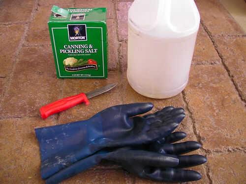 - Poner 2 libras de sal (sin yodo) en un cubo de cinco galones.