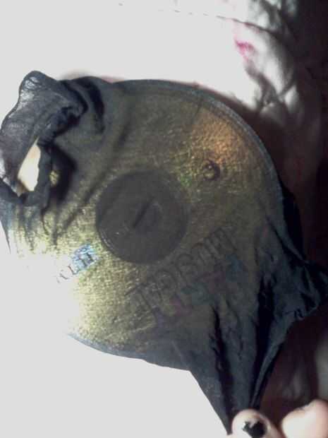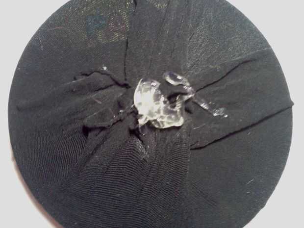 ahora cubra el CD con panty hoes y atar hacia pegamento caliente o medio. Ahora poner un montón de pegamento caliente en el medio