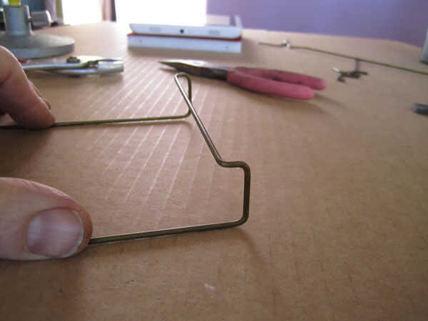 Mida y marque 1/4" en desde el lado izquierdo de la"C"en la parte superior e inferior. Doble el cable 90 grados para que el lado izquierdo ahora encuentra perpendicular a la mesa.