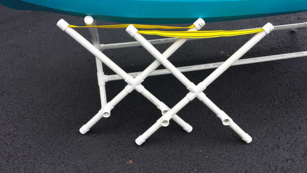 Aquí es el poco inteligente de ingeniería: cuando vayas a descansar los kayaks en la parte de "Grandes V" de la cuna, gravedad hará que la Asamblea sí mismo empuje aparte. Las correas de contrarrestar la propagación y mantienen todo junto. Como el barco se basa en la tira, tira de los brazos de horquilla * inward.* podría ser capaz de conseguir este artilugio sin tirantes, pero con el tiempo poco a poco se deformaría. Las correas son una gran parte de lo que hace este trabajo bien.