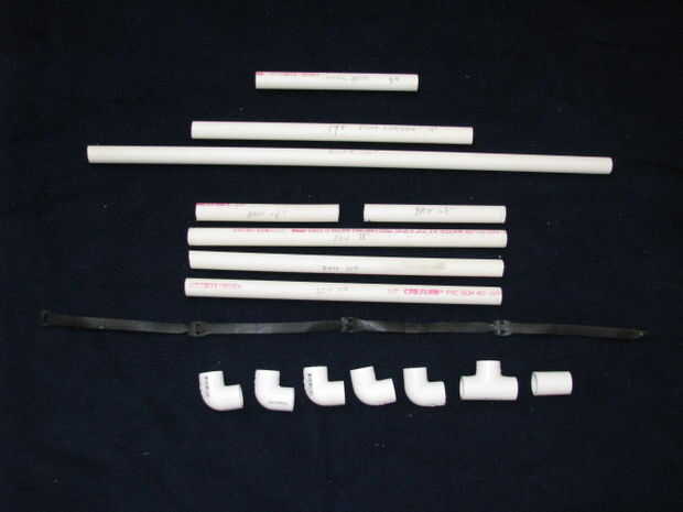 Ya tuve todos excepto dos de los artículos anteriores, ya que reutilizar piezas que previamente fueron utilizadas para apoyar una "tienda de campaña ligera" hecha de un armazón de PVC y un pedazo grande de nylon rip-stop blanco. Tienda ligera fue utilizada para la fabricación de imágenes fotográficas de la madera torneada que solía vender en las ferias de arte. Me encanta reutilizar partes de mis esfuerzos anteriores, y animo a todos a tratar de hacer las piezas mismas, en lugar de lanzar lejos después de cada uso.