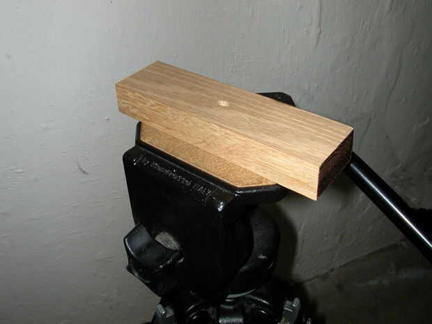 Ahora vamos a perforar y golpee la base. Es el tamaño estándar para trípode 1/4" a 20 TPI. Este sensor requiere una Nº 7 broca, que es. 2010", unos 13/64" si no tienes un sistema numerado. Después de la perforación a través de todo el camino cerca del centro (la necesidad de exactitud, no recordemos), romper el grifo y el hilo que mamones. Hacer un test rápido ajuste para asegurarse de que cabe el trípode, en caso de que agarró la llave equivocada.