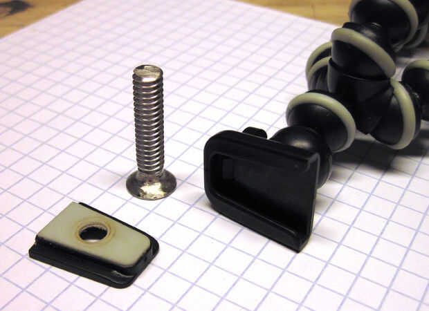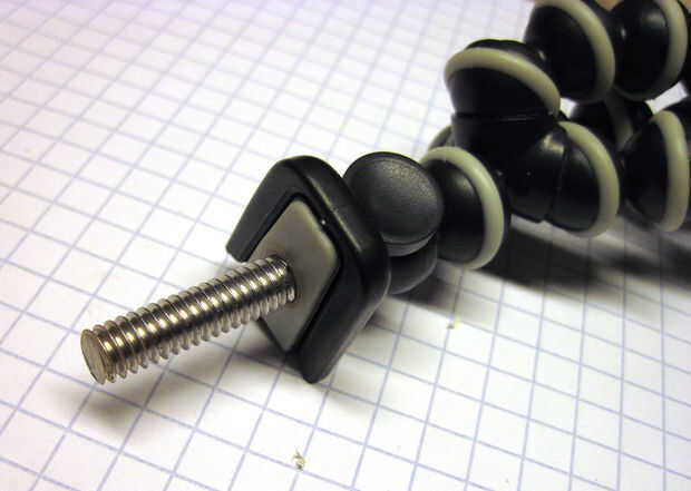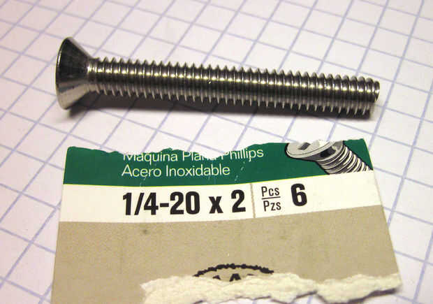 El 1/4 x tamaño del tornillo 20 es el tamaño estándar para las cabezas de trípode. Significa que el tornillo es 1/4 de pulgada de ancho y 20 hilos por pulgada. Se puede ver en la foto anterior que compré tornillos de 2 pulgadas. Voy quitando un poco de esa longitud así que usted puede comprar tornillos de 1 1/2 pulgadas en su lugar.
