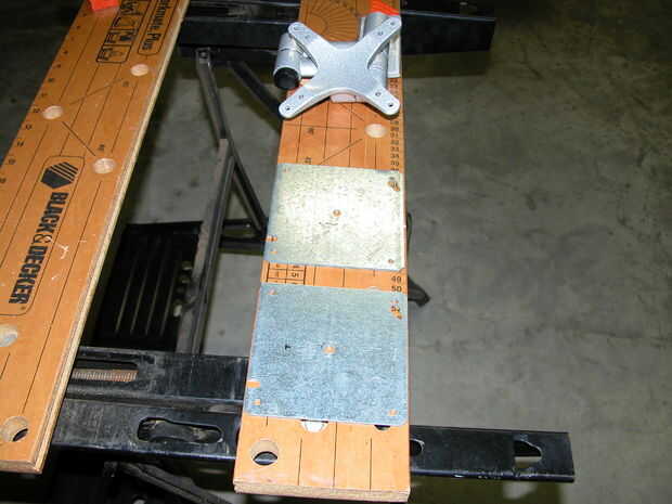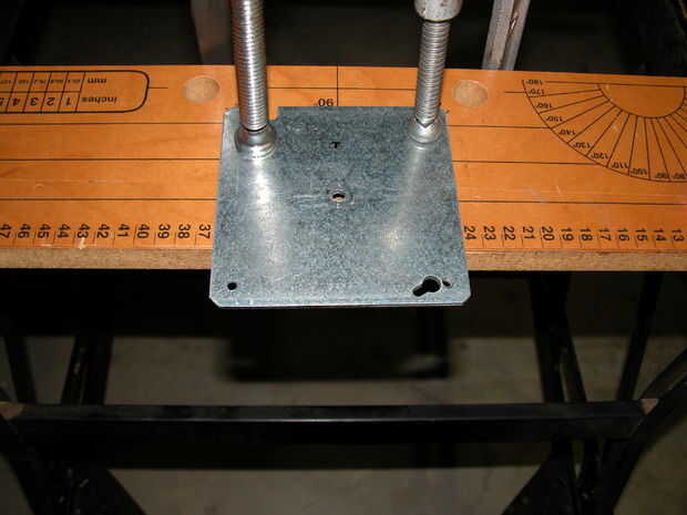 Nota: Las placas de acero que utilicé fueron cubiertas de la caja eléctrica que ya tenían una esquina ranura y un agujero de llave. No hagas como yo hice! Alejarse de su soporte más que 1/4" los orificios existentes en la placa de acero con el fin de no comprometer su resistencia. Después de mi error, decidí hacer el agujero perforado que está demasiado cerca del hoyo de llave en la parte inferior del producto terminado por lo que no tendrá peso tratando de jalarlo. Hind-vista me muestra debería haber utilizado el orificio de llave existente o movido mis agujeros lejos del hoyo de llave existente.