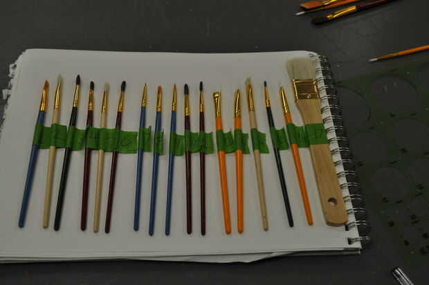 Una vez que han cortado la cinta para cada pincel, etiquetarlos con números o letras.