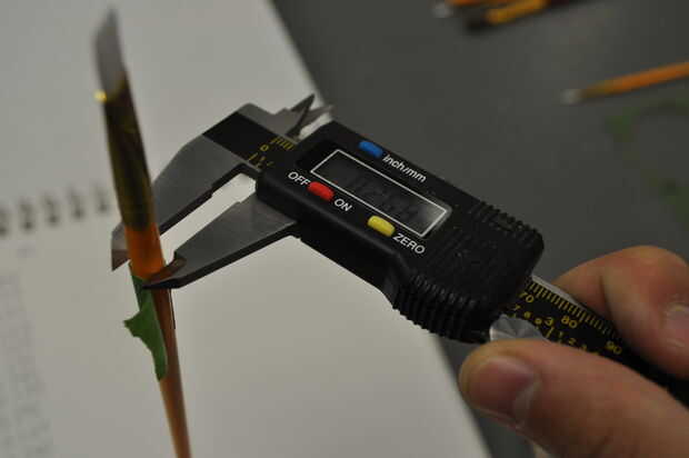 Ahora se mida el diámetro de cada pincel con sus pinzas.