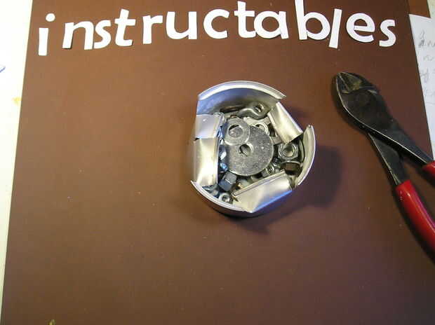 Paso 1: Pistola de pegamentoTe hace falta:una pieza de madera, alambre de cobre, alambre de acero, Coca-Cola puede y pernosherramientas:Alicates, tijeras y tornillos