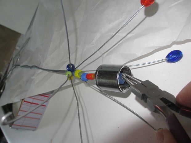 Para el cable extra largo cavado alrededor de la caja de herramientas hasta que encontré un pedazo pesado de saldos (para ducha)? Engarzadas perlas en el largo cable añadido los saldos; añadido un cordón para sujetarlo y le dio un rizo para asegurarlo a cabo. Hice esto para el lastre; para que el titular no sea tan 'tippy'.