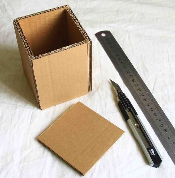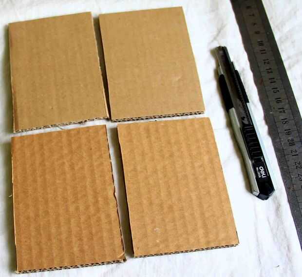 Corte 4 pedazos de cartón en dimensiones igual... según el tamaño que desee hacer el sostenedor de la pluma.
