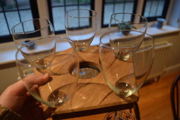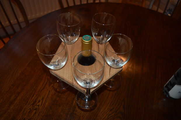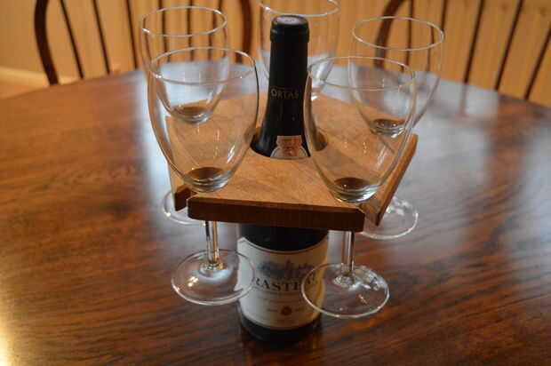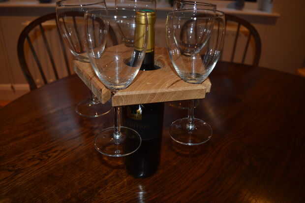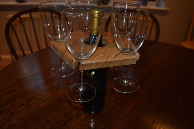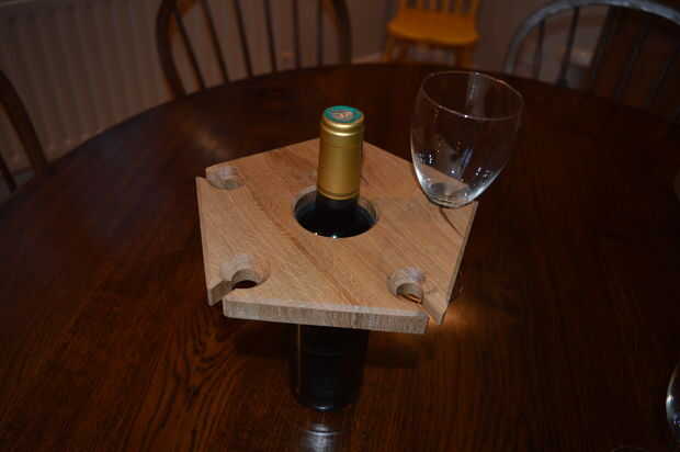 Que vi estaba hecha de alguna madera de la plataforma o algo y en mi opinión no era muy elegante que es lo que quieres por lo que puede asociar muy bien con lo elegante de la forma es una botella de vino.