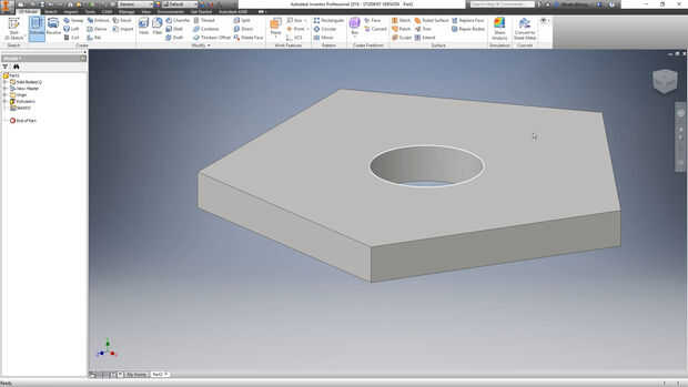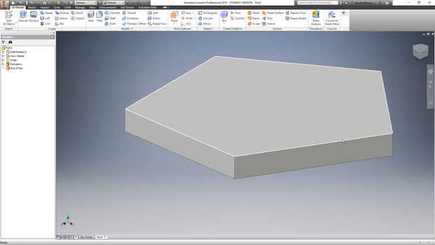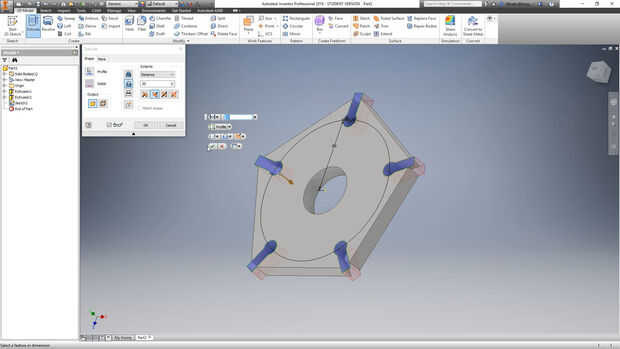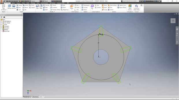 Luego, describí el diseño de la ranura donde los vidrios se sentarían luego utilizan la herramienta de matriz para hacer 5 copias en las esquinas del Pentágono y cortar a través del modelo.