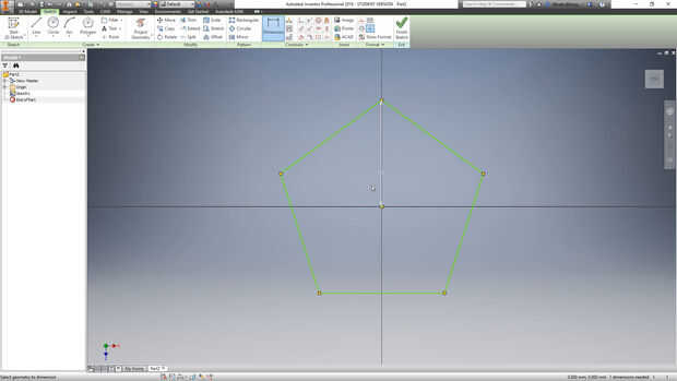 Comencé con la herramienta polígono y seleccionar 5 lados, sabía cuando empecé que quería que un Pentágono como 5 vidrios es el máximo que puede caber alrededor de una botella de vino con un diámetro de tamaño razonable del caddy.