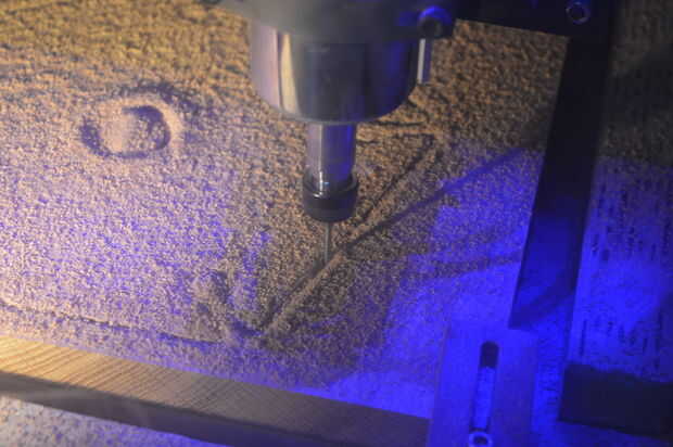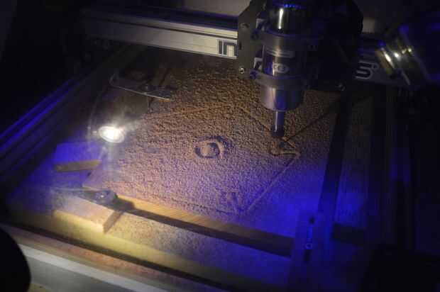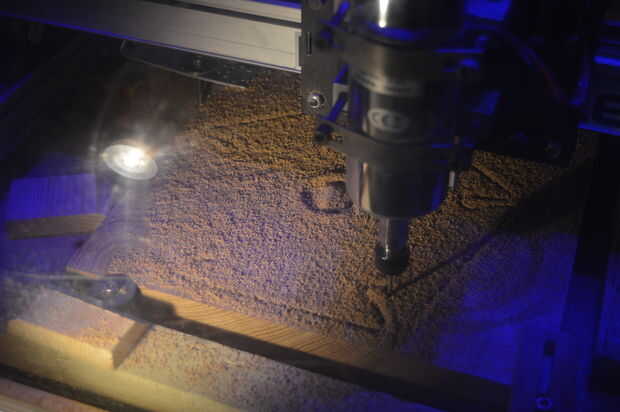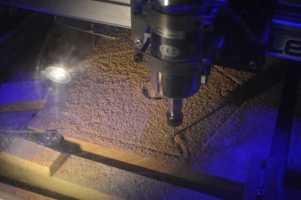 A continuación carga una pieza de roble en mi cnc y reprimieron firmemente.