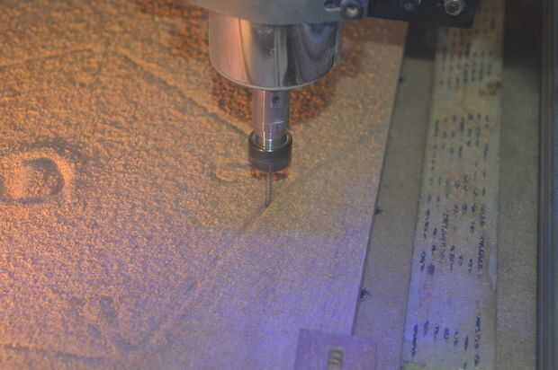 Usé 1/8 pulgada solo flauta fresa para expulsión de las virutas buena. El trabajo tomó un tiempo porque estoy teniendo problemas con mi CNC en el momento; hay algo no adecuado y por lo tanto su rigidez se compromete un poco. Yo sólo notado durante el corte de esta pieza así que canceló el programa, ralentizado de las tasas de alimentación y continuó al terminar el trabajo.