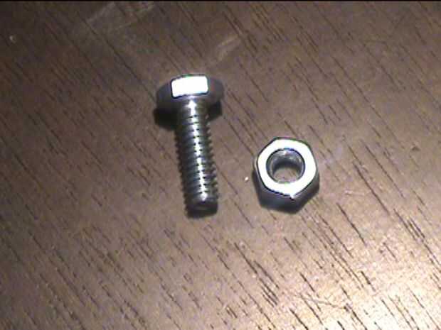 * También necesitaba un perno y una tuerca que compré en la ferretería.