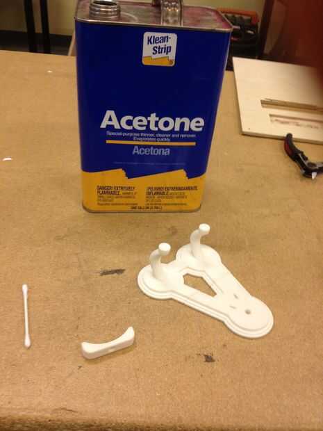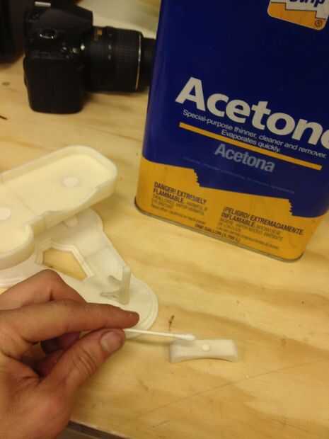 las piezas de plástico ABS a uno con el otro es mediante el uso de acetona. Cogí un par de algodón