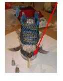 Paso 5 Ahora tienes lana por debajo de los palillos del viento alrededor de la botella.