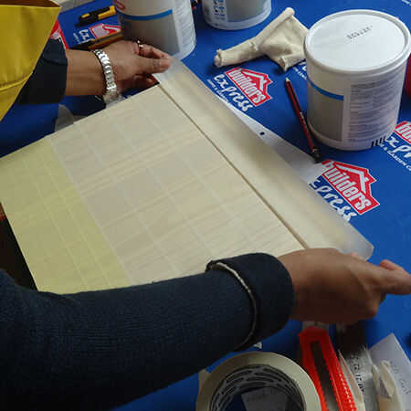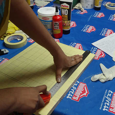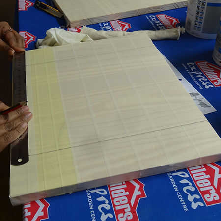 1. use cinta de enmascarar ancha para cubrir todo el tablero. Se superponen las filas de cinta de unos 4 a 5 mm.