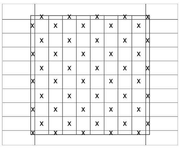 3. utilizando el diagrama de arriba, marca alternando bloques con una 'X'.