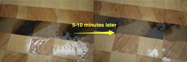 - (Opcional): después de aplicar 1-2 capas de aceite mineral puro, más puede impermeabilizar la Junta mediante la adición de cera al aceite. Puede hacer su propia mezcla de aceite o la cera o utilizar productos comerciales premezclados como carnicero bloque acondicionador de Howards, que usaba.