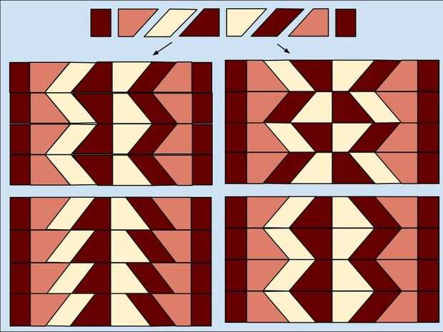 En la última tabla de corte en la foto, en lugar de utilizar el diseñador de la CB, usé algunos pedazos de desecho de la madera para hacer algo más creativo que rayas normales o damas. Diseñador de CB no puede manejar este tipo de patrón, pero es fácil pensar en su propio diseño. Tomé algunos trozos de madera de corte de bisel de otros proyectos y pensar diferentes maneras que pude organizar las piezas en los patrones interesantes. Las posibilidades son infinitas, he visto otros crear ondas, flores y patrones de diamante - Recuerde pensar en su diseño desde la perspectiva de la veta. Que bosquejar mis ideas en google docs, tormenta de ideas 4 posibles patrones diferentes utilizando el perfil final de grano de mis piezas de chatarra.