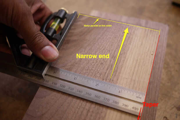 - Compruebe si los bordes del tablero están en paralelo, usando una escuadra de combinación. Mi arce era casi perfecta, mientras que mi cerezo y el roble eran cónicos.