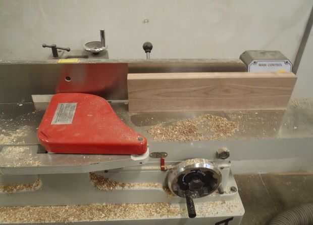 - Comprobar el estado de la madera - coloque sobre una superficie limpia y plana y ver si las caras son abombadas o torcidas. Elegir la parte más plana del reborde y colocarlo boca abajo en la ensambladora, con el grano hacia adelante de la herramienta de corte.