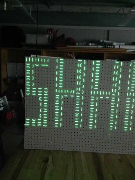 tuvimos algunos invitados venir a Omaha fabricante grupo que estaban teniendo problemas para encontrar nuestro espacio en la noche. Decidimos que necesitábamos a algún tipo de logo del light-up para la ventana delantera. Decidimos que algunos Cool